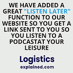 Playback speed×Share postShare post at current timeShare from 0:000:00/0:00TranscriptLogisticsexplained.com - Emerge Global (Manchester) LtdDarran Lawrence - Emerge Global (Manchester) LtdLogistics ExplainedMay 13, 2025ShareTranscriptWelcome to Logistics Explained: An Industry Leading Supply Chain & Logistics Podcast.Explore how shipments move efficiently worldwide and gain valuable insights from industry experts.SUBSCRIBE TO RECEIVE ALL PODCASTS Logisticsexplained.comDiscussion about this videoCommentsRestacksLogistics ExplainedSubscribeAuthorsLogistics ExplainedRecent PostsLogisticsexplained.com - LISTEN LATER FUNCTIONDec 17, 2025Logisticsexplained.com - LISTEN LATER FUNCTIONDec 3, 2025Would you like to do a podcast about your business Nov 18, 2025Become our MONTHLY SPONSOR Spread the news about your business Nov 11, 2025Would you like to do a podcast about your business Nov 4, 2025 • Logistics ExplainedLogisticsexplained.com - LISTEN LATER FUNCTIONOct 29, 2025 • Logistics ExplainedBecome our MONTHLY SPONSOR Spread the news about your business Oct 21, 2025 • Logistics ExplainedWould you like to do a podcast about your business Sep 22, 2025